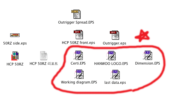 각 파일들을 포토샵 eps파일과 일러스트 8.0파일로 저장해 놨는데....갑자기 ....출력파일 모으기 하고나서 모양이 이렇게 변했습니다.