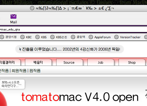 그리고나서 다시 인터넷을 연결하니 윈도우 제일 위의 사이트 주소창의 한글이 깨집니다.